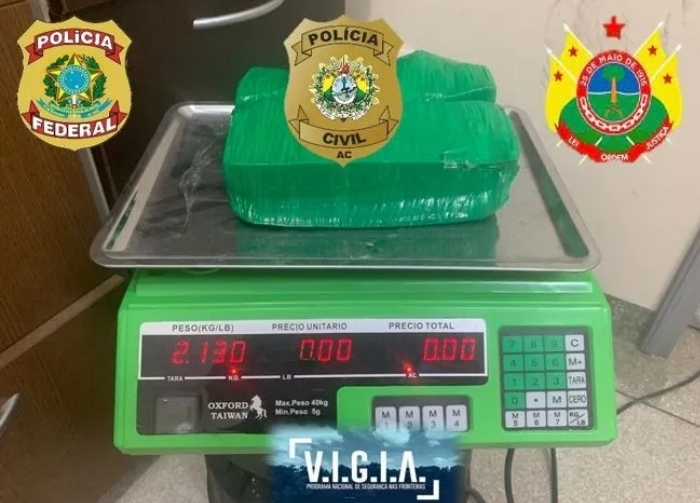 Eles foram parados na barreira montada no rio Liberdade, na divisa entre Cruzeiro do Sul e Tarauacá, o garupeiro transportava um saco com produtos alimentícios e a droga escondida.