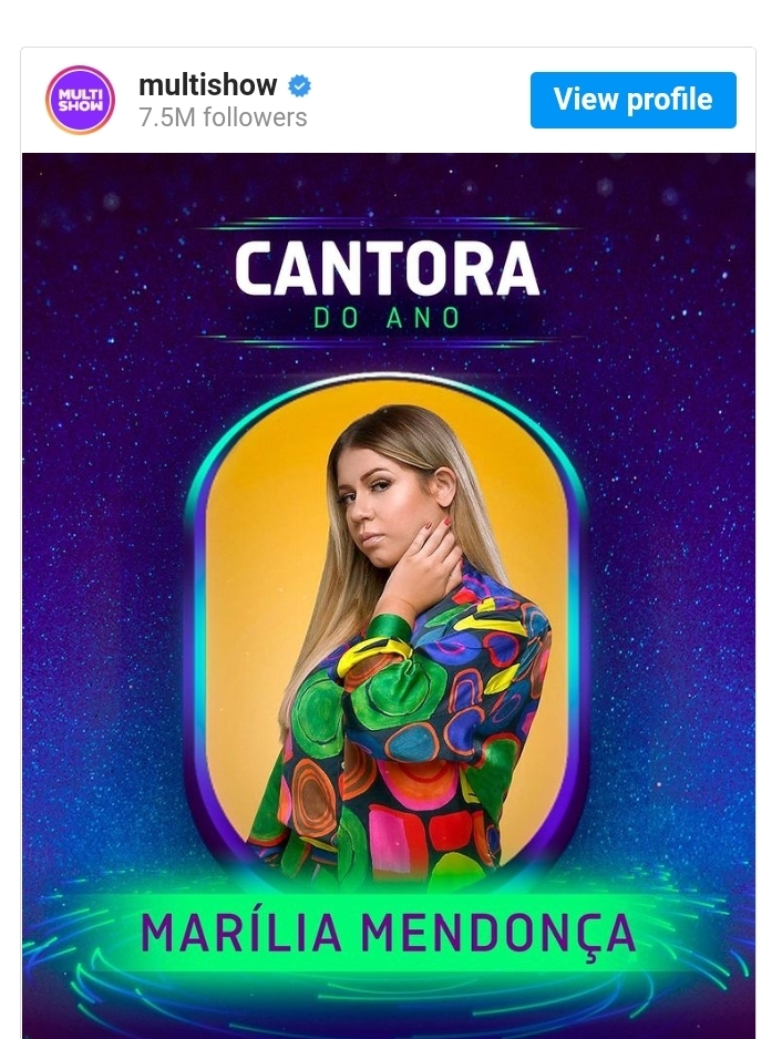 Marília Mendonça estava concorrendo com Anitta, Iza, Ivete Sangalo e Luísa Sonza em votação popular na categoria de ‘Melhor Cantora‘ do ‘Prêmio Multishow 2021’.