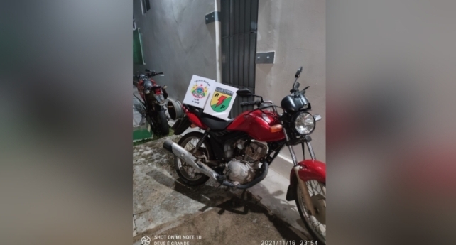 A motocicleta Honda FAN 150 na cor vermelha foi recuperada e restituída à vítima sendo a ocorrência encaminhada para a Delegacia de Polícia para os demais atos legais.