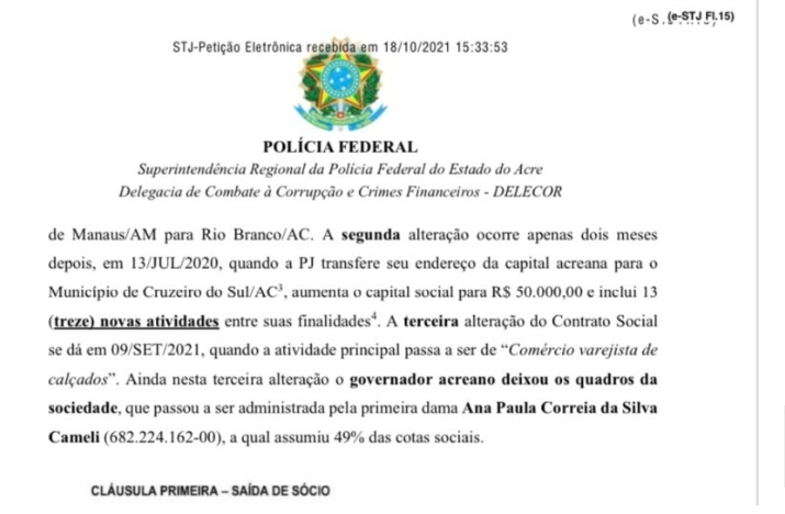 Em setembro de 2021, quando ocorre a última alteração na empresa e a Polícia Federal avançava nas investigações sobre a vida financeira do governador, Gladson Cameli sai dos quadros societários da holding, deixando a primeira-dama, Ana Paula Correia Cameli, como sócia-majoritária.