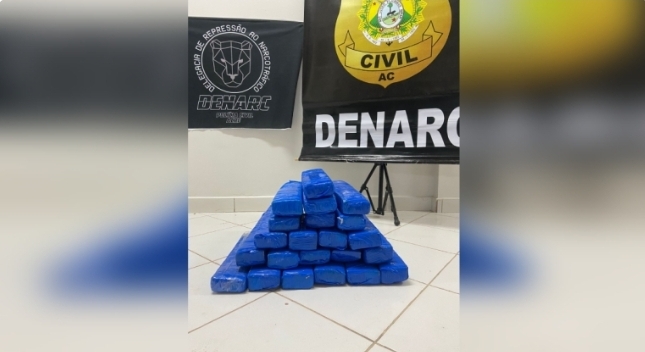 A Polícia Civil, por meio da Delegacia de Repressão ao Narcotráfico -DENARC, apreendeu na noite dessa sexta-feira, 14, 25 quilos de maconha em posse de W. L. M. de 23 anos. A apreensão se deu na rodoviária de Rio Branco em um ônibus oriundo de Porto Velho-RO.