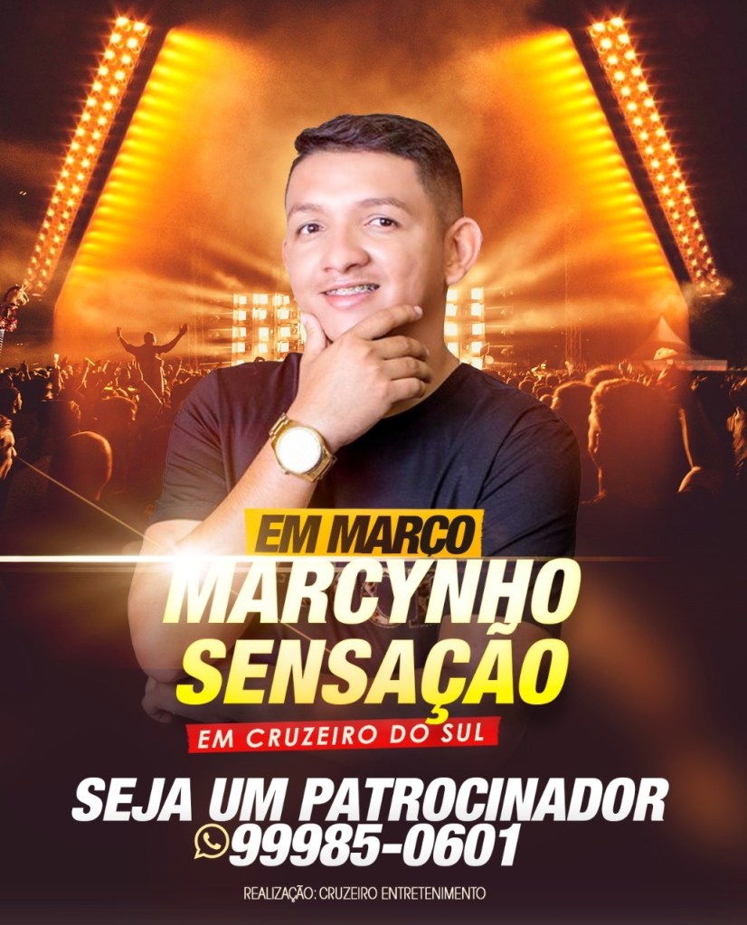 Marcynho Sensação se apresentará (6) março em Cruzeiro do Sul, no estacionamento do clube dos Policiais Militares.