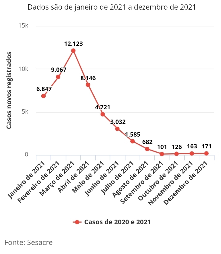 Veja os casos novos registrados mês a mês no Acre
