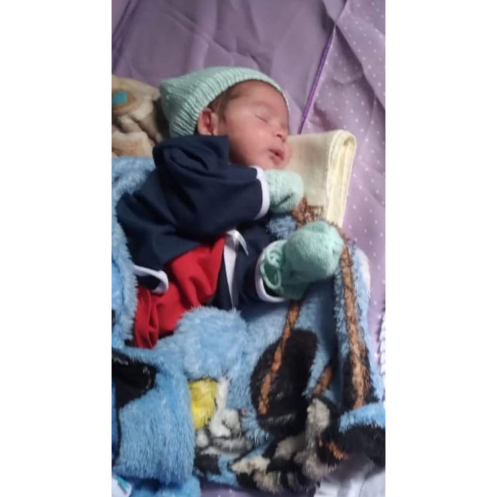 Logo após o nascimento, o bebê foi transferido para a UTI da maternidade, onde inicialmente foi intubado. Como a cesariana foi feita com a mãe em quadro de Covid, o bebê ficou em isolamento. Doze dias depois e com três testes negativos para Covid, o bebê recebeu alta, onde aguarda a alta da mãe na casa da avó.