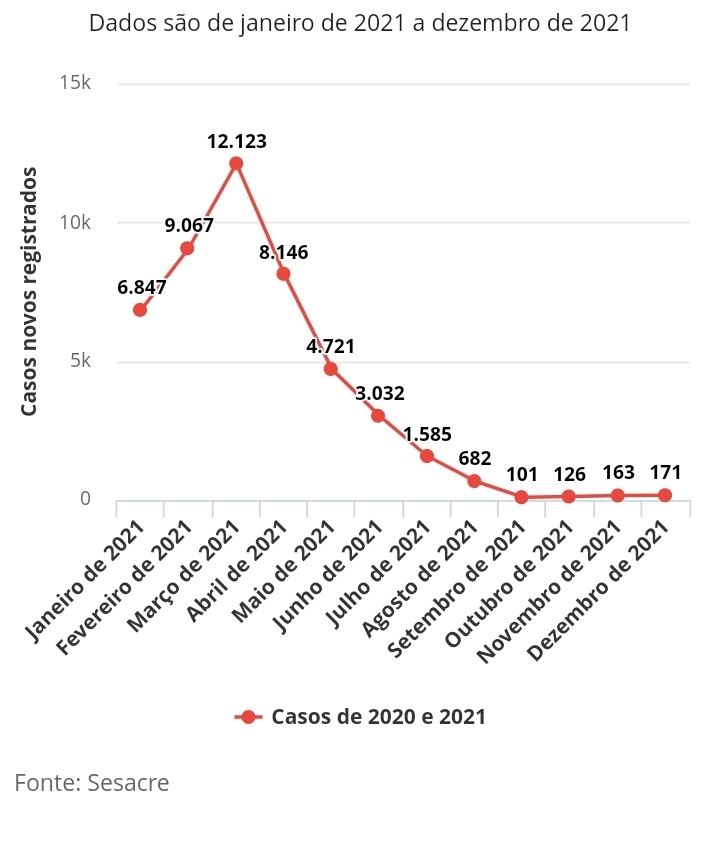 Veja os casos novos registrados mês a mês no Acre