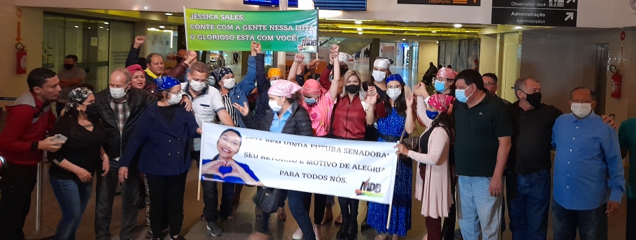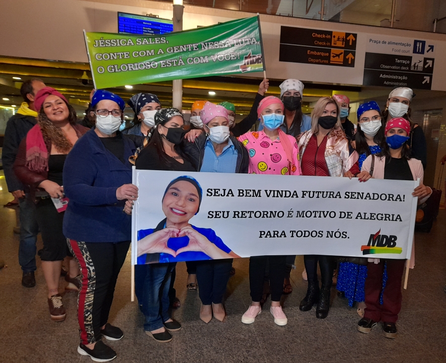 A deputada federal Jéssica Sales (MDB) chegou ao Aeroporto Internacional de Rio Branco por volta das 22 horas deste sábado, 2. Após concluir a primeira fase do tratamento contra o câncer de mama, essa é a primeira vez que a deputada retorna ao Acre. Uma recepção calorosa dos amigos e membros do seu partido foi organizada.