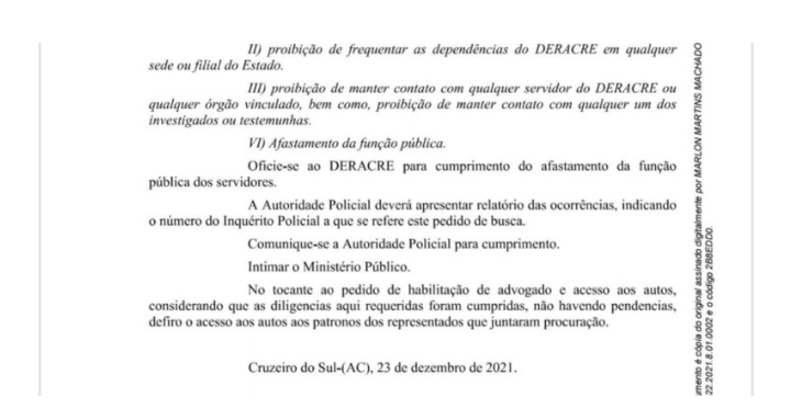 A Operação Parking que afastou Luciano Oliveira e outras 7 pessoas do Deracre de Cruzeiro do Sul, foi comandada pelos delegados afastados da Delegacia de Combate à Corrupção por decisão do governador Gladson Cameli. O trabalho de combate à corrupção desenvolvido pelos delegados afastados, mexeu com amigos do governador do Acre e investigou casos escabrosos como o da “Máfia dos Precatórios”, que envolve políticos e empresários do estado (Veja Aqui). Os casos estão inconclusos, os delegados afastados e o amigo do governador reassumindo função pública.