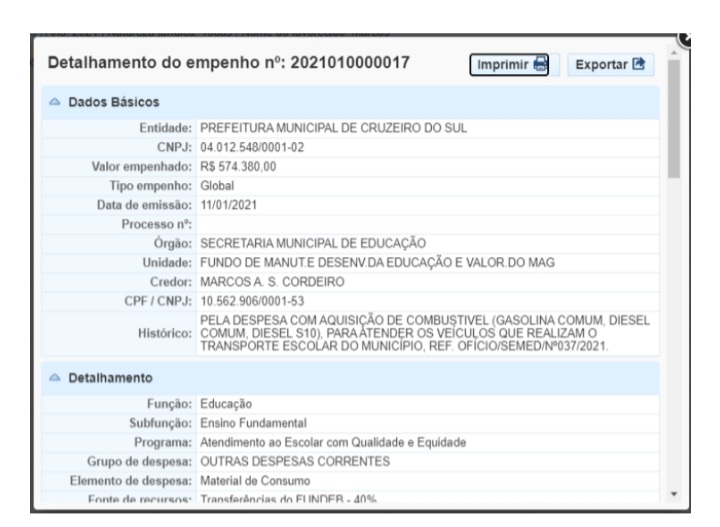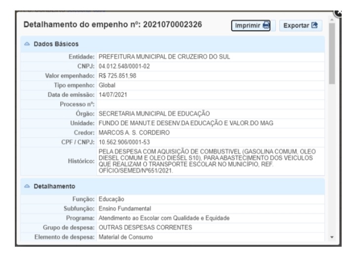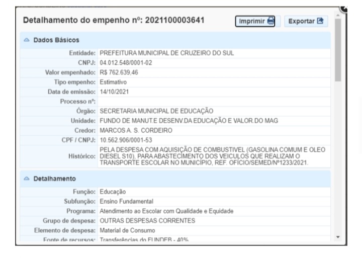 Consta no Portal da Transparência da Prefeitura Municipal de Cruzeiro do Sul que o prefeito Zequinha Lima, no seu primeiro ano de mandato, em 2021, teria gastado um valor absurdo com combustível para atender as demandas da educação municipal, mas o que chama a atenção é o fato de ser ano de pandemia, ocasião em que as aulas estavam sendo realizada de forma remota.