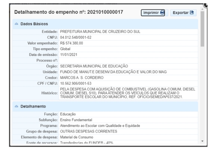 Com apenas 11 dias à frente da prefeitura, o prefeito Zequinha Lima gastou mais de meio milhão de reais com combustível para a educação, com a justificativa de que era “para atender os veículos que realizam o transporte escolar do município”, mas não estava havendo transporte escolar, devido as aulas remotas.