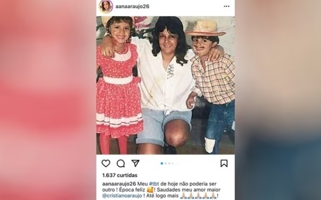 A irmã gêmea de Cristiano, Ana Cristina Araújo, postou foto dos dois quando crianças, vestidos com roupas de festa junina e lembrou dos bons momentos ao lado do cantor. “Época feliz! Saudades meu amor maior”, escreveu.