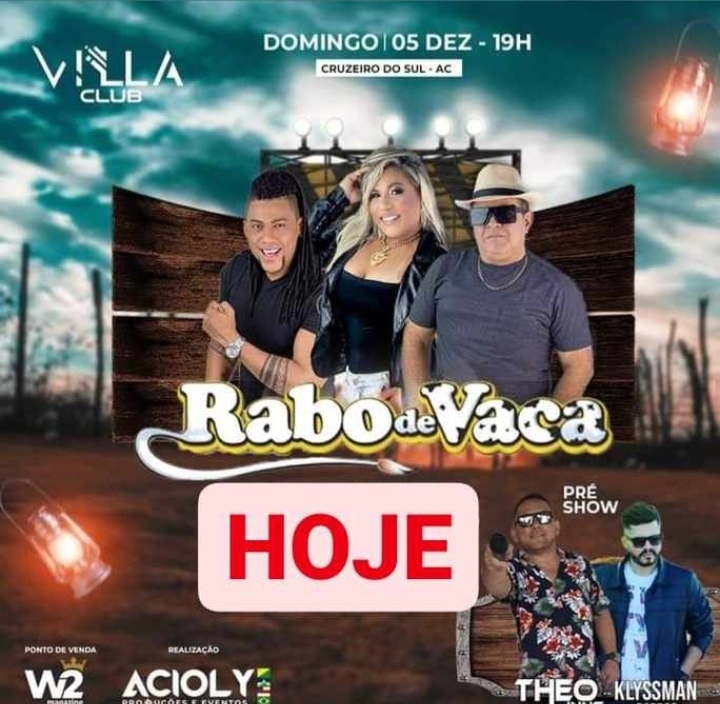 Nesse domingo (05), a banda Rabo de Vaca se apresentará na cidade de Cruzeiro do Sul, na boate Villa Club às 19 hrs. Quem não resiste à combinação mágica do triângulo, sanfona e zabumba, que conduz casais a rodopiar uma noite inteira na pista, já terá um compromisso para a noite dessa domingo (05). AContinuar lendo “É HOJE: ‘Rabo de Vaca’ se apresenta nessa domingo (05) em Cruzeiro do Sul”