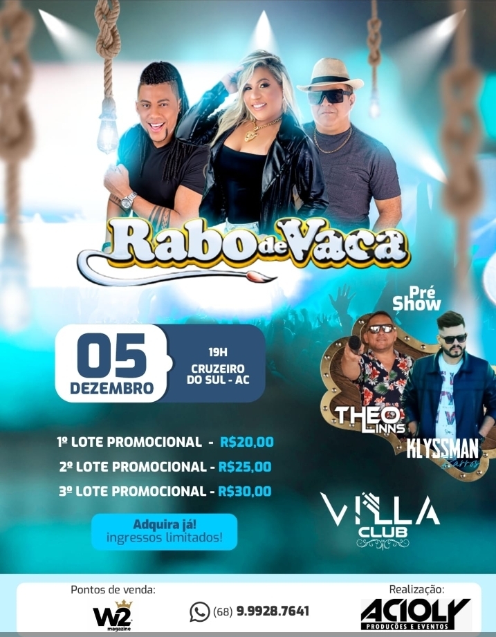 Show: Rabo de Vaca confirmado na boate Villa Club em Cruzeiro do Sul no dia (05) de Dezembro