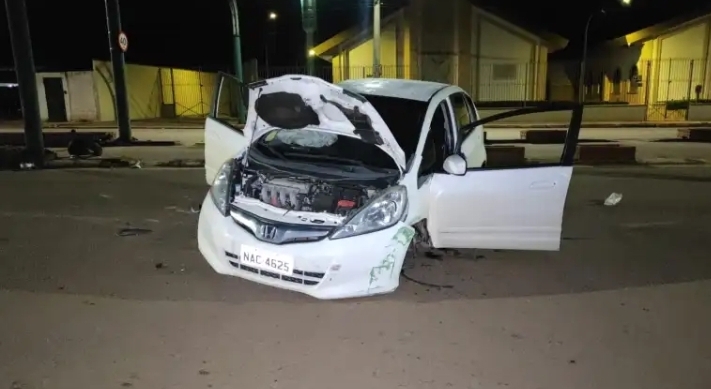 Na capital Motorista perde controle da direção de carro, colide em canteiro e pórtico e vai parar no PS