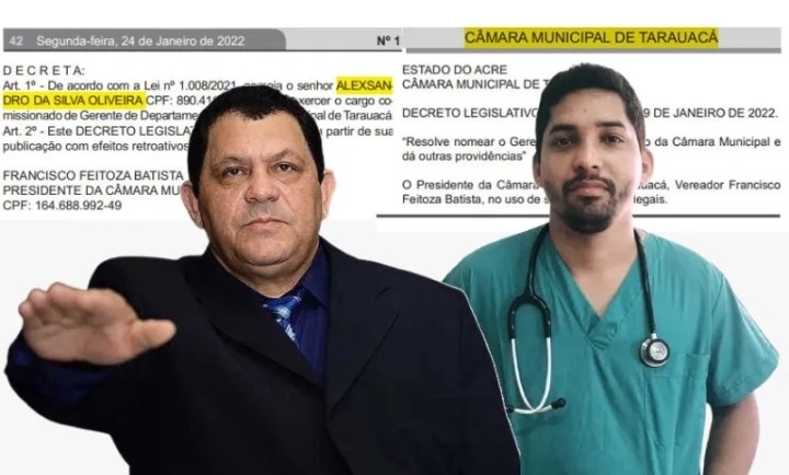 Nesta segunda-feira, 24, o presidente da Câmara de Vereadores de Tarauacá, Francisco Feitoza Batista (PDT), nomeou ALEXSANDRO DA SILVA OLIVEIRA, conhecido por “Dico”, para o cargo de Gerente de Departamento da Câmara Municipal. A nomeação chamou atenção, porque “Dico”, que já foi candidato à vereador pelo mesmo partido de Chico Batista, reside em Pando, Cobija,Continuar lendo “Presidente da Câmara de Tarauacá nomeia aluno de medicina que mora na Bolívia com salário de R$ 2,3 mil”